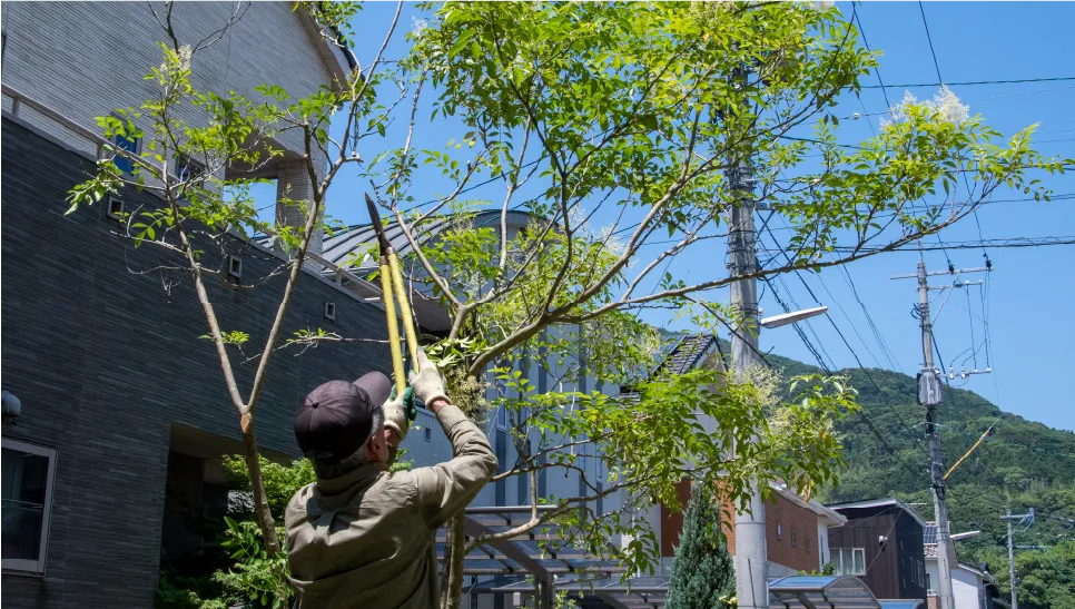 中木の伐採を承ります。庭からはみ出してしまった木など、安全面に配慮しながら剪定・伐採いたします。